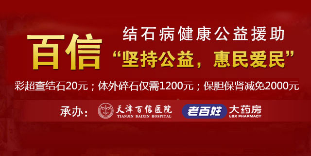 温馨提示:任何疾病都是早治早好的,对待结石也是一样,患有结石的病人应及时到正规医院治疗,以免治疗不及时而引发严重并发症。如果您还有其他疑问,可直接点击在线咨询,或直接拨打医生热线:022-58228818,天津百信医院欢迎结石患者前来咨询就诊。