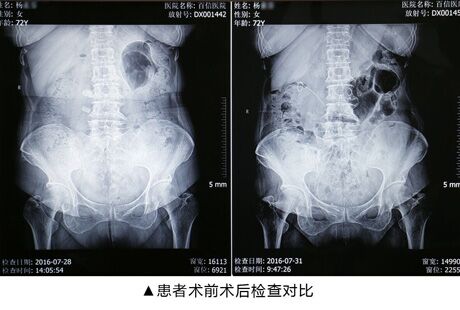 随后医生为老人做了一个详细的检查,但检查的结果却让人心头一沉。从X光片的显示结果看,老人的输尿管比正常人的要狭窄,在右侧输尿管上方有一颗直径1.6厘米的结石,在右侧输尿管下盏有一颗直径约0.8厘米的结石。由于结石卡住了输尿管,造成重度的肾积水,并且老人还患有严重的高血压和糖尿病,病情十分严重。