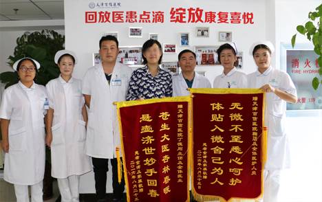 故事本应到此结束,可就在今天,金老师和爱人特别定制了两面锦旗来到百信医院,赠送给丁德刚主任及住院部全体医护人员。金老师介绍,之前还曾担心手术会影响到教学工作,现在已经开学几天了,身体状况相当好,有效感受不到是刚刚手术后。金老师说:“选择这个特别的日子,就是为了加衷心的表达感谢之情!”